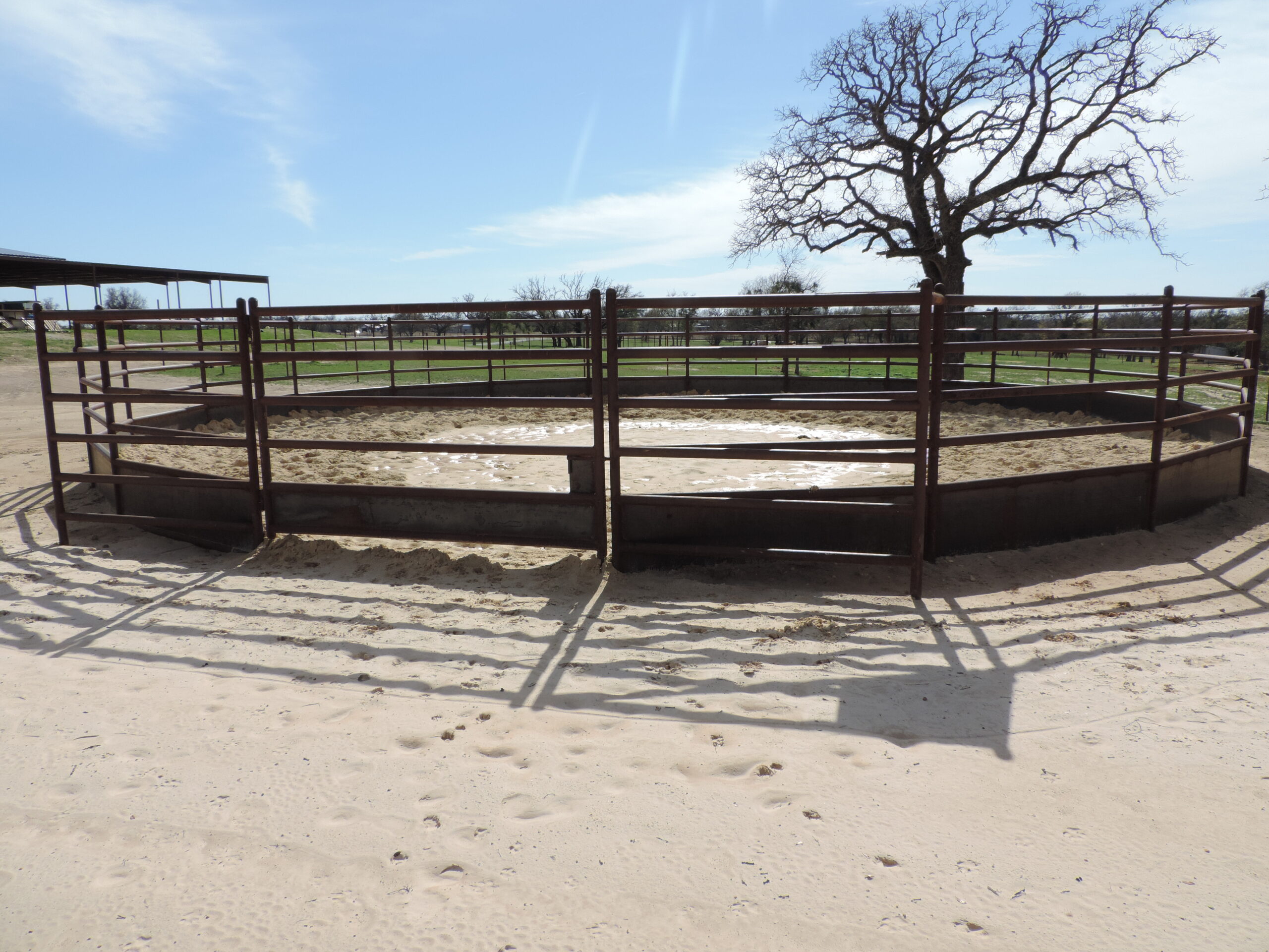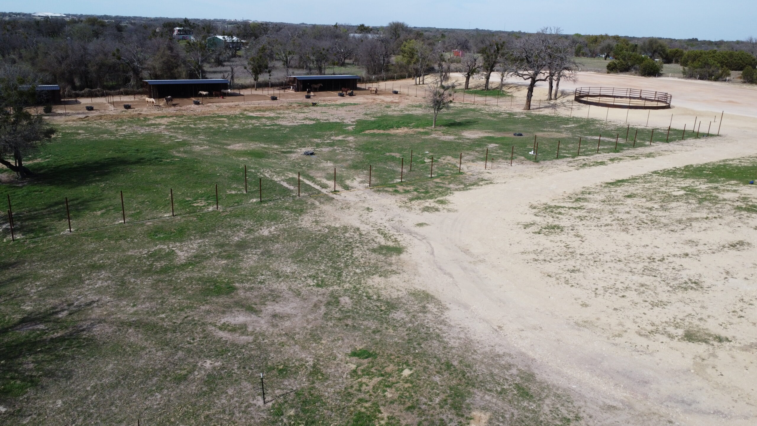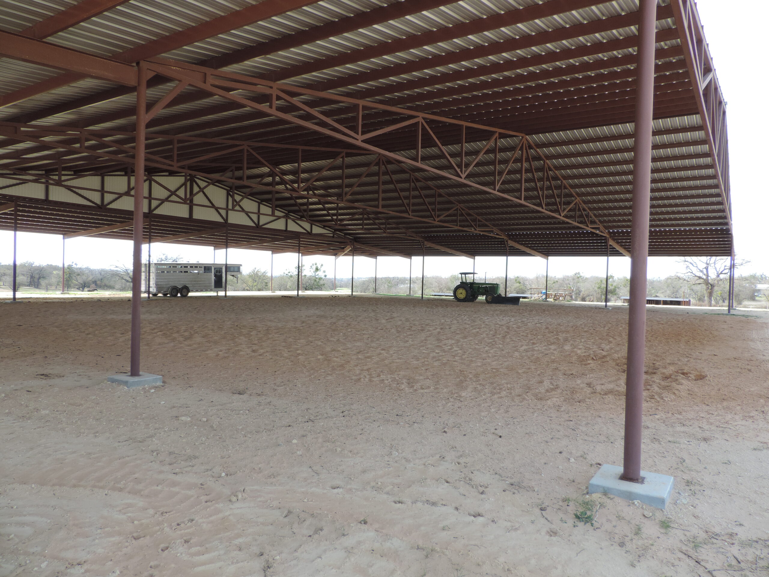 135X190 Covered Arena has been engineered and designed for multiple apartments, washroom, tack room, horse walkers and anything else you can think of all under one roof. 20 GPM water well located just to the left of the Covered arena with 3 hydrants throughout the property. 3- 20X50 Horse sheds with tack and feed rooms attached on the end caps of each building. 52 foot pipe round pen to the west of the covered building, along with a 175X300 sanded pad perfect for the new roping arena install. Multiple build sites for a new home, under the covered arena or just on the property.